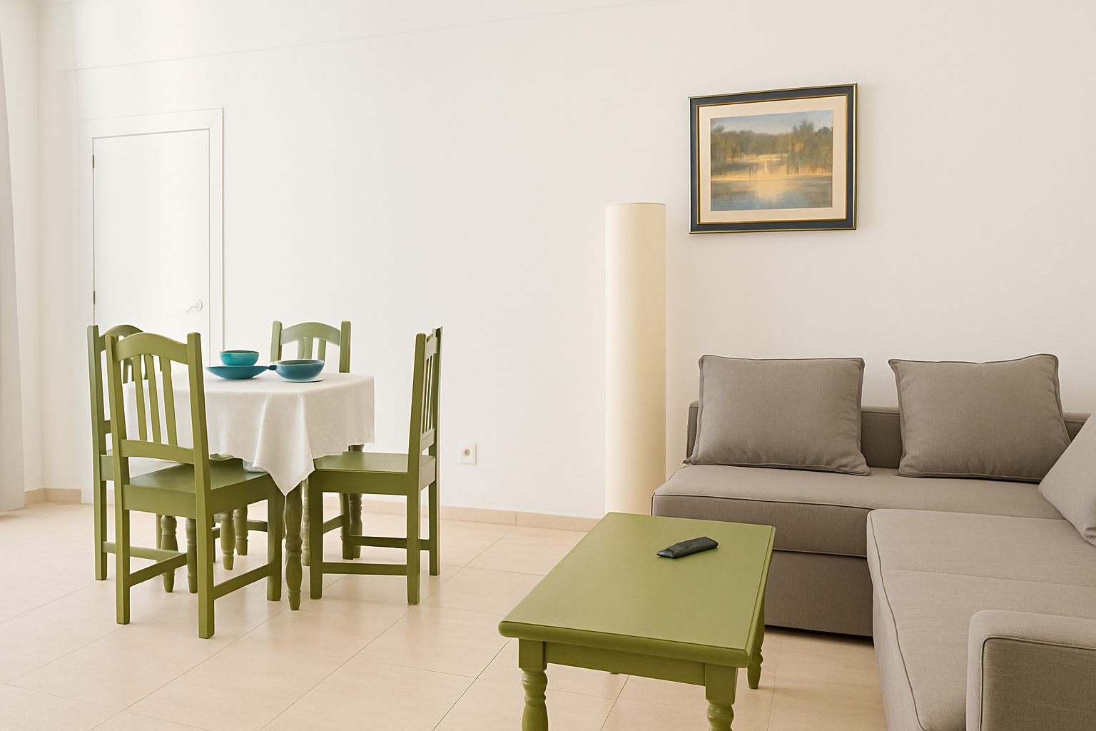 - Salón con cocina abierta: espacio luminoso con salida directa al balcón principal.