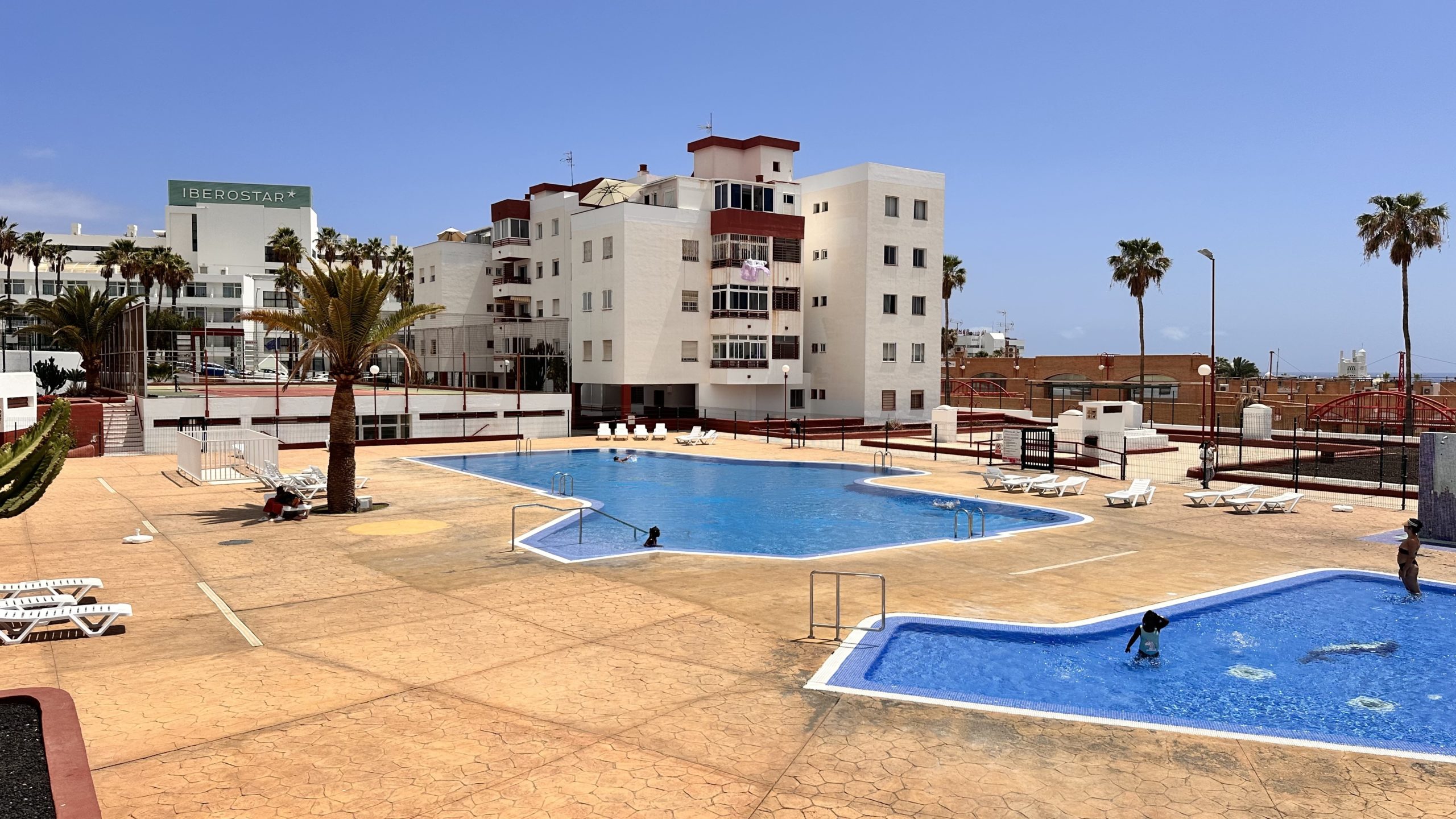 Fincapre Canarias presenta este amplio apartamento de 3 dormitorios ubicado en el popular complejo Palmeras del Sur, en el corazón de San Eugenio Bajo, Costa Adeje.