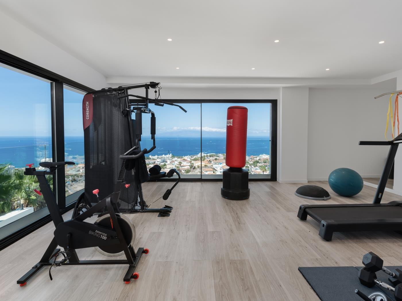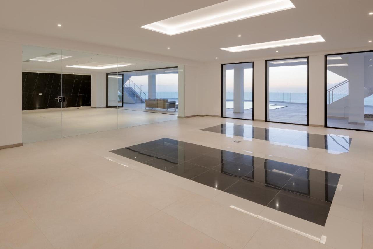 Planta inferior: dos apartamentos independientes con baños en suite, gimnasio con vistas al mar